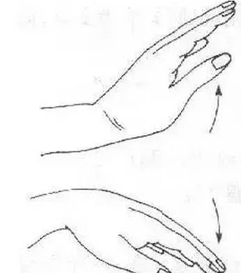 1、旋轉手腕,將手臂保持水平伸直狀態,按逆時針方向,緩慢旋轉手腕八到十次,然后換順時針方向旋轉。